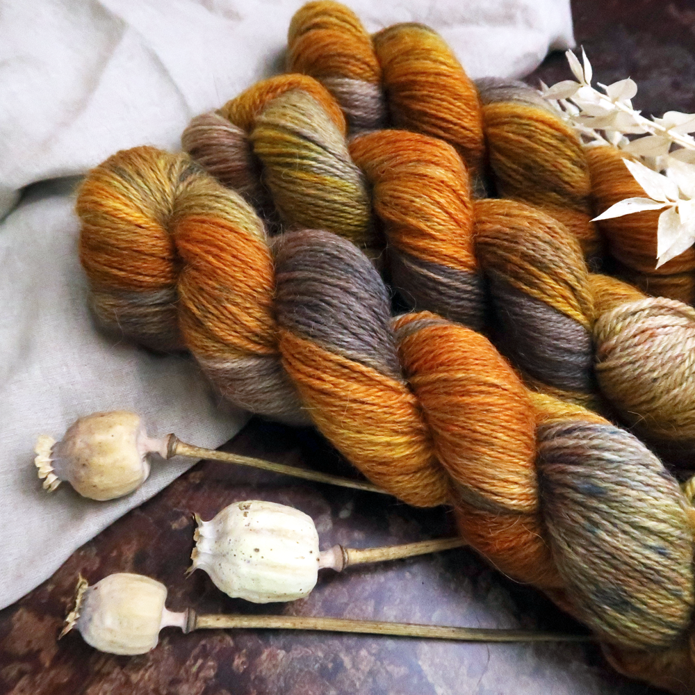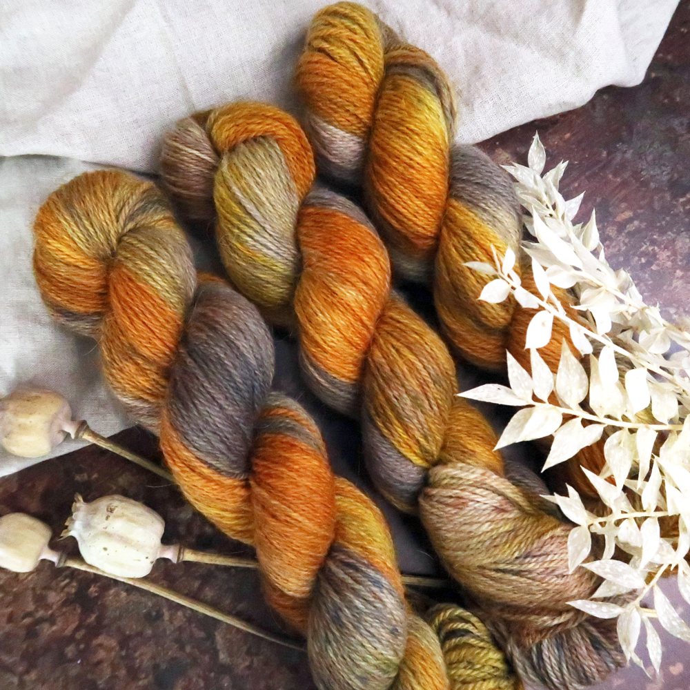 Discover a wondrous world of color with our Botanical Apothecary yarn! Our hand-dyed Shetland, BFL, and DK yarns will transform your knitting creations into bewitching works of art. From bold reds and regal purples to juicy oranges, you'll find the perfect hue to bring your projects to life!