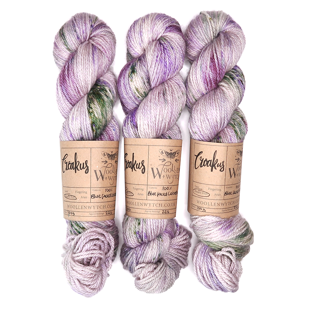 Introducing Croakus - in BFL Double Knit! This colourful, hand-dyed yarn is as unique and special as it looks. Croakus pairs crocus inspired lilac and green hues, that'll have you croaking with delight! (That's right, we just made a frog pun - Croakus!).