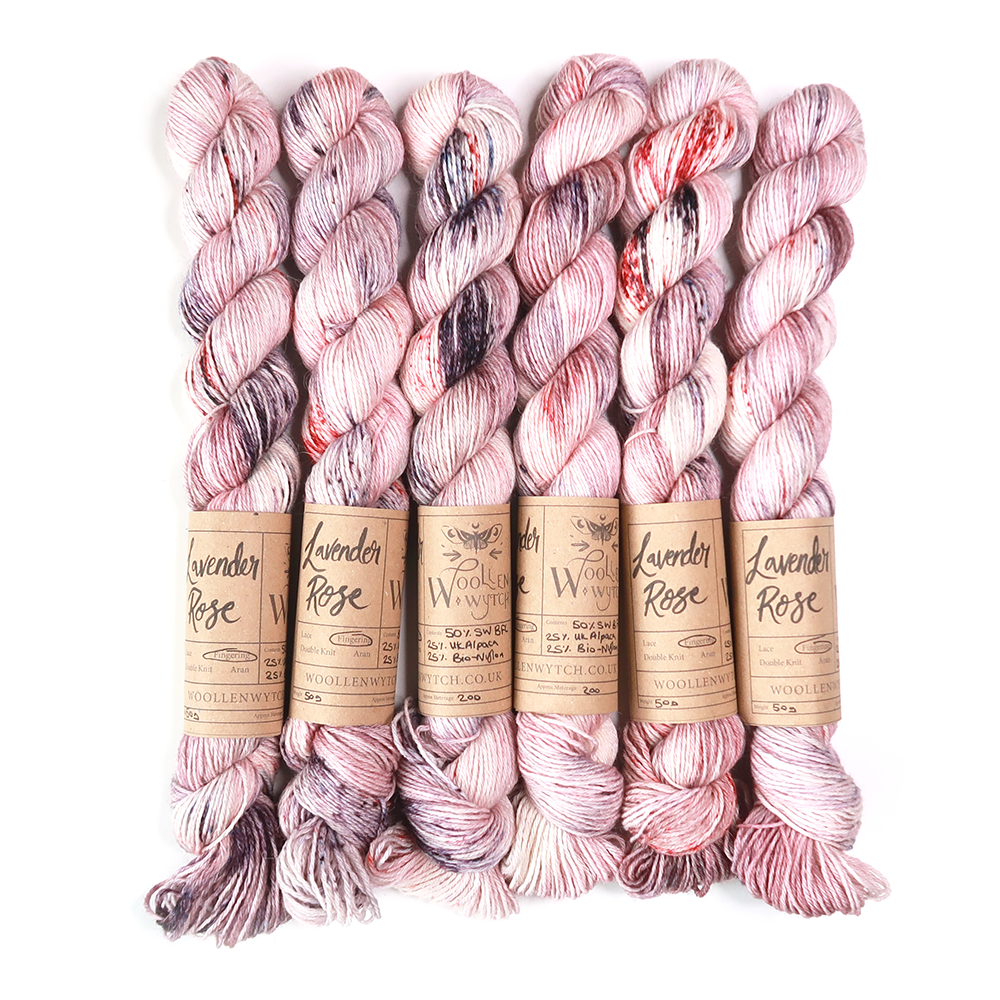 Woollen Wytch's Lavender Rose yarn is perfect for adding a pastel pop of colour to your sock collection! This hand-dyed blend of BFL/Alpaca/Bio-Nylon will give you the beautiful lavender hue you've been dreaming of, along with a subtle speckle - what's not to love!!