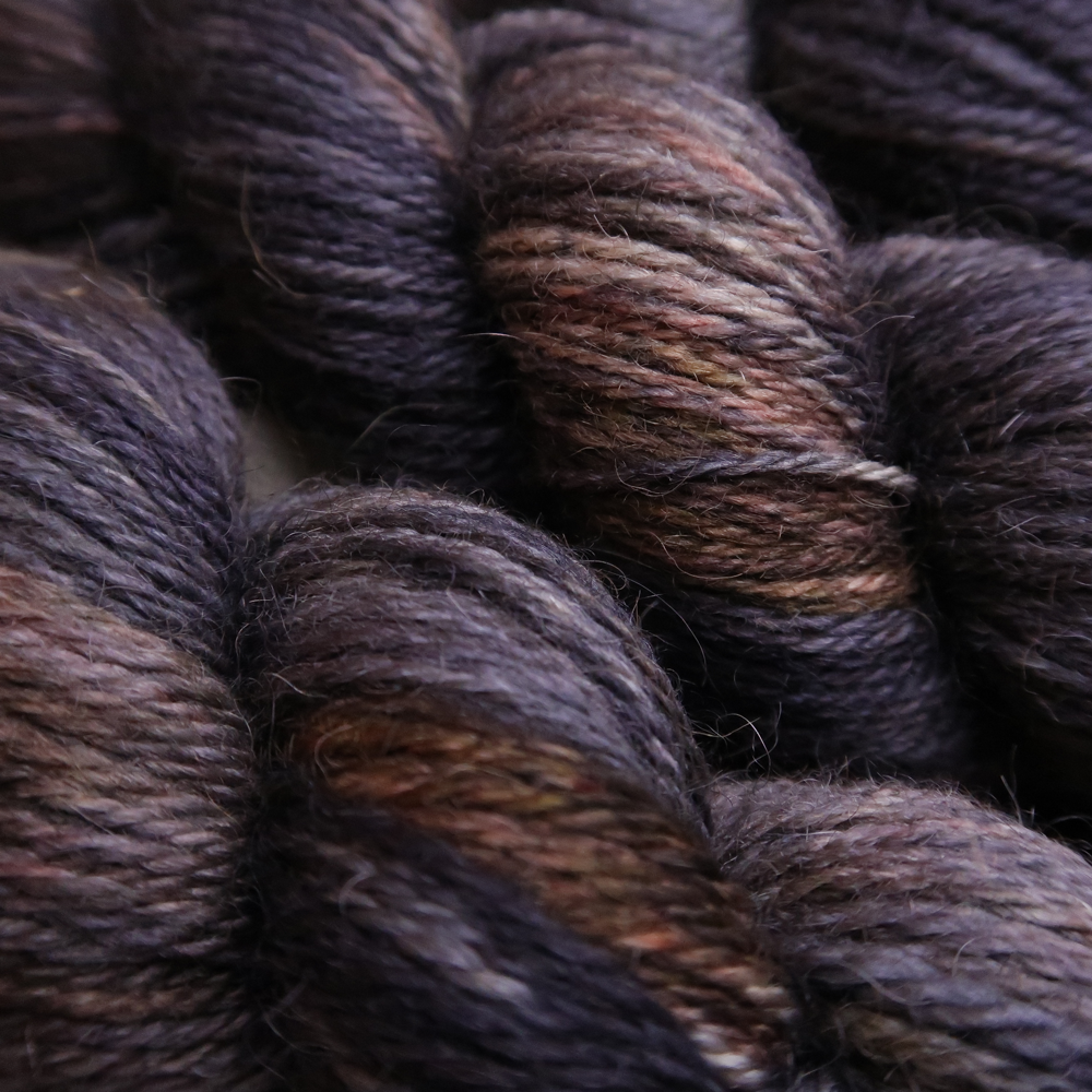 Cosy up with our playful Botanical Apothecary! This hand-dyed fingering yarn has all the colours you need to create something special - orange, purple, and red with a hint of the grey tones from the Shetland wool.