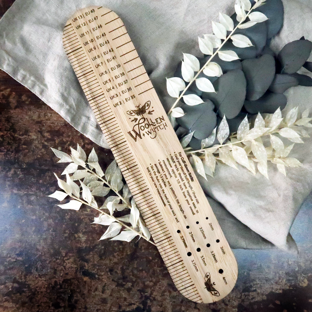 Made from oak veneer and laser cut in the UK, the Sock Ruler is hardwearing for everyday use and being thrown around in your project bag. Better than the Acrylic alternatives, it has a tactile weighty feel you just don't get from plastic.