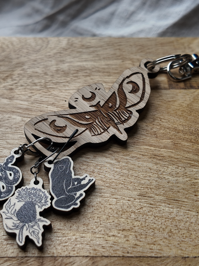 Keep your favourite stitch markers safe, tidy, and always to hand with this beautiful laser-cut oak veneer moth keyring. Designed to clip onto your project bag with the sturdy lobster clasp, it’s a lightweight yet practical way to stop your markers from tangling or getting lost between projects.